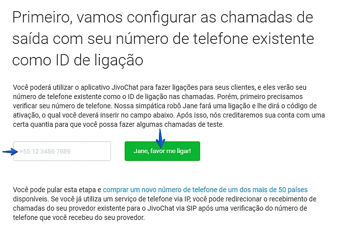 Ativando seu número de telefone no JivoChat