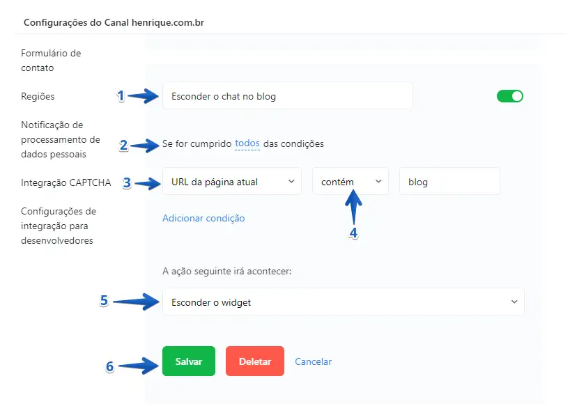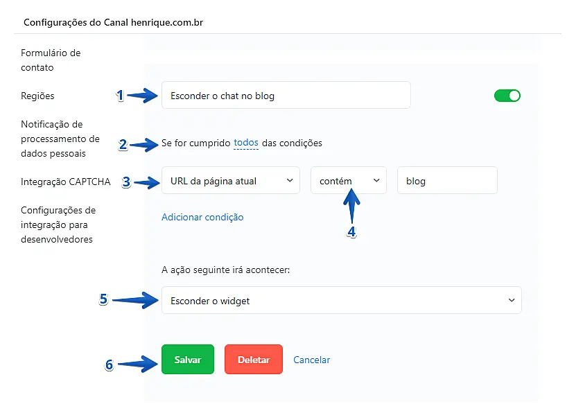 Pronto! Agora o widget do chat não aparecerá mais nas páginas desejadas.