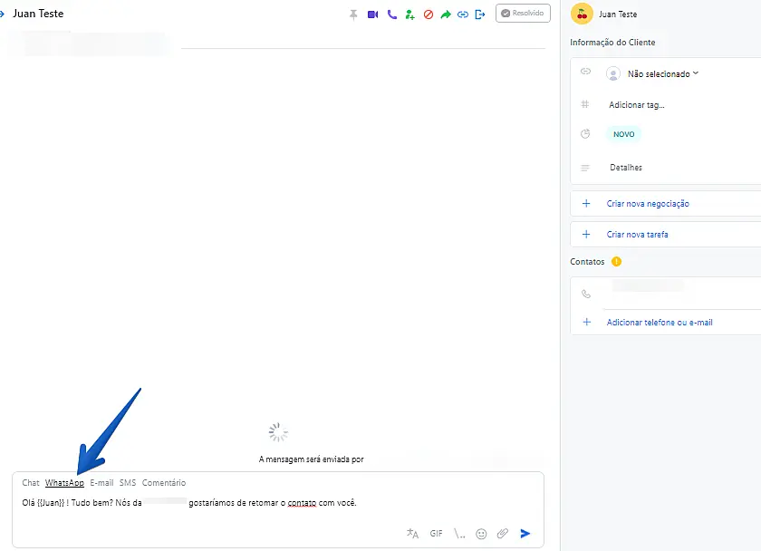 - Só é possível iniciar uma conversa com o cliente através de Template Message (mensagens de modelo), saiba mais aqui