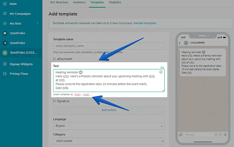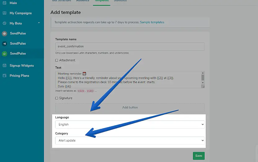Criando o template message na SendPulse