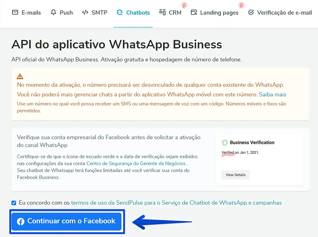Verificando o seu número de telefone para o WhatsApp Business