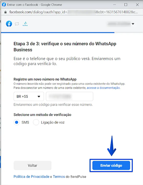 Após feito isso, clique em Enviar código.