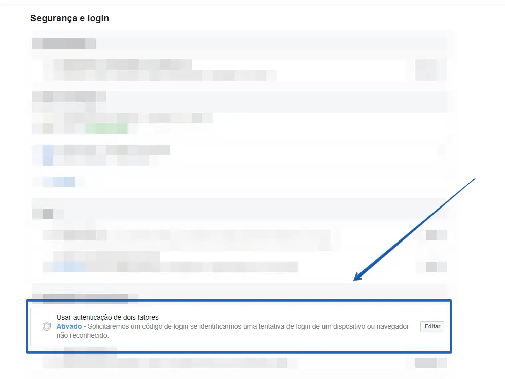 Habilite a autenticação de dois fatores em sua conta do Facebook acessando: https://www.facebook.com/settings?tab=security
