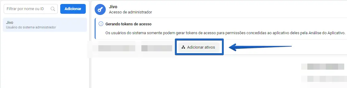 Copie o ID de dentro da sua conta Meta e cole na JivoChat