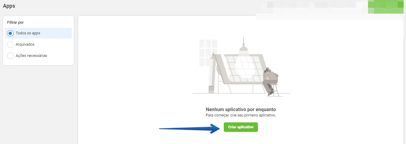 Agora crie o seu aplicativo clicando no botão verde "Criar aplicativo"