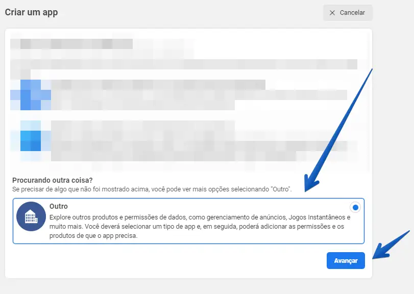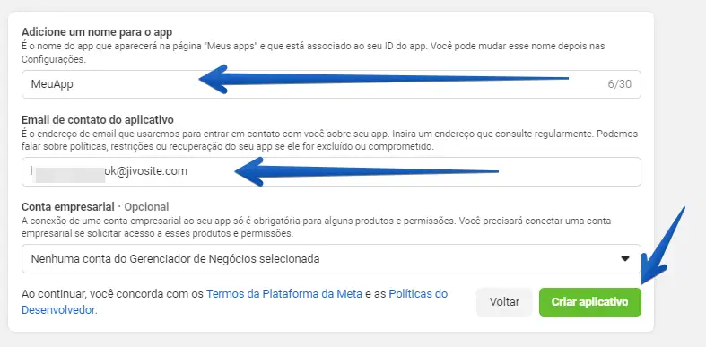 Entretanto, caso você ainda não possua, siga os passos de criação recomendados pela Meta, que aparecerão nessa mesma aba