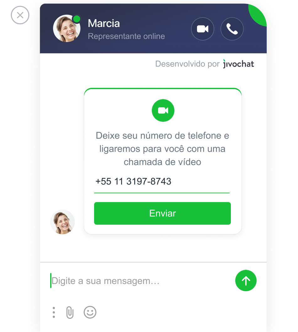 Não são necessários downloads adicionais. As videochamadas são processadas diretamente na janela do JivoChat.