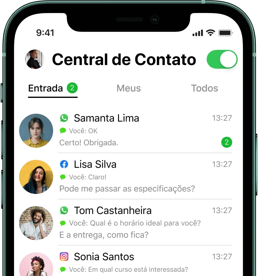 Conversas do WhatsApp e outros aplicativos, chat online, redes sociais e e-mail são recebidas pelo JivoChat. Você não precisa alternar entre diferentes ferramentas para atender todos os seus clientes